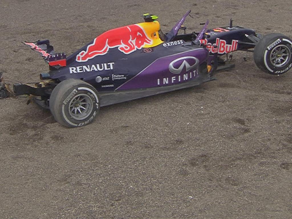 Watch as Daniil Kvyat's Red Bull car crashes and flips over in